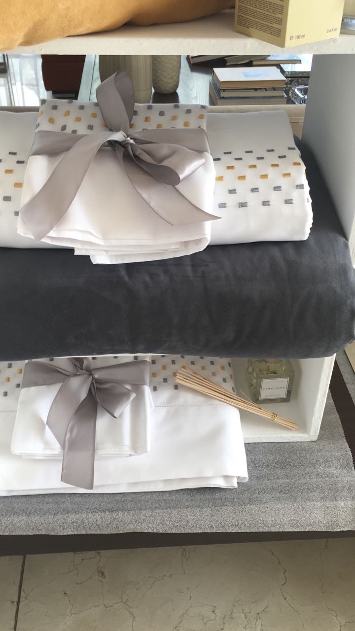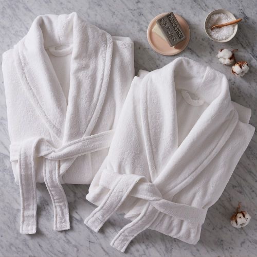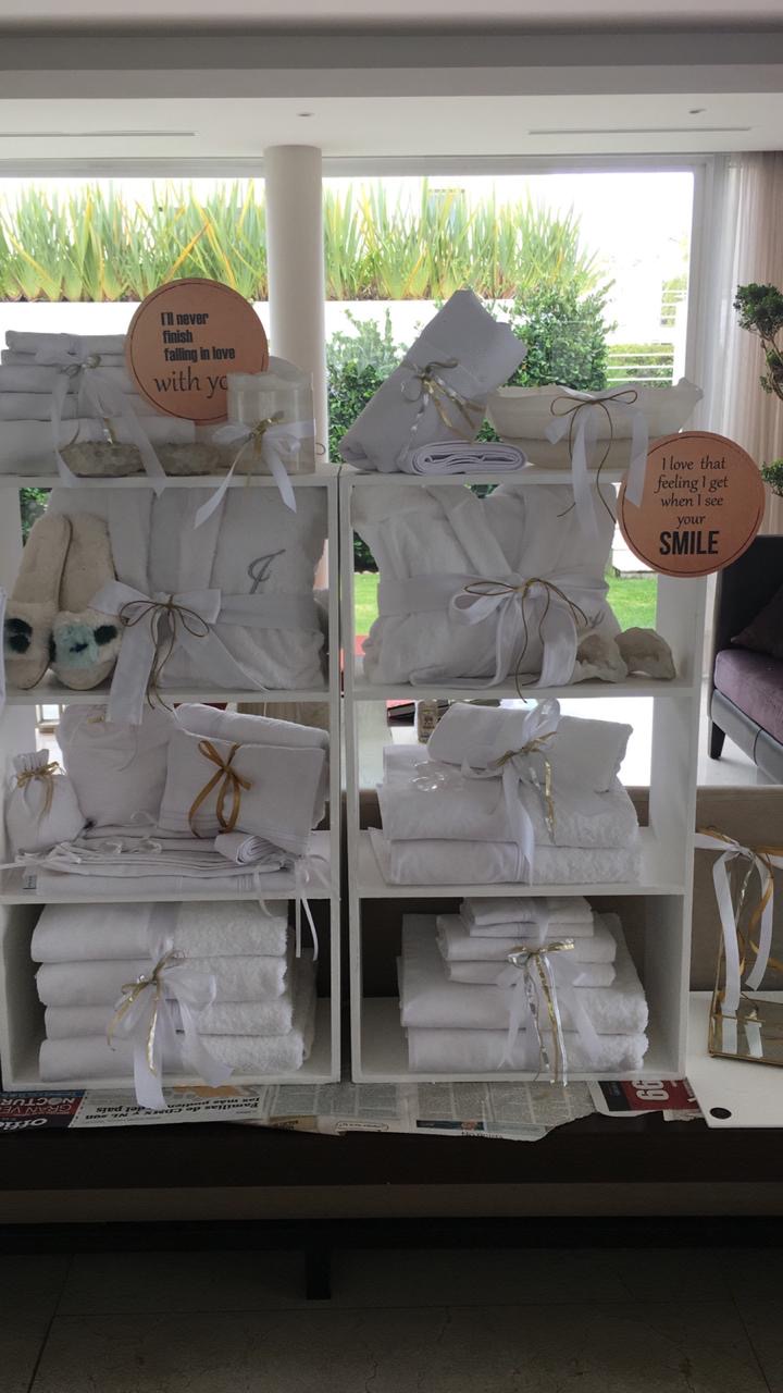 Batas, toallas, pantuflas, duvet, ropa de cama y accesorios pensados para el descanso y el viaje la acompañan con suavidad y armonía.