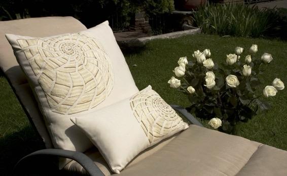 Este diseño apuesta por la serenidad de una paleta monocromática, fusionando tonos crudos, beige y arenas sobre una base de tela resistente. El imponente bordado de caracol náutilo, realizado con ricas texturas de hilo, aporta un toque orgánico y muy artesanal que se convierte en el protagonista visual de la pieza. Ideales para casas de playa, terrazas techadas o salas de estar donde se busca incorporar la calma del mar con una estética costera y sofisticada.