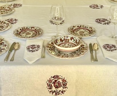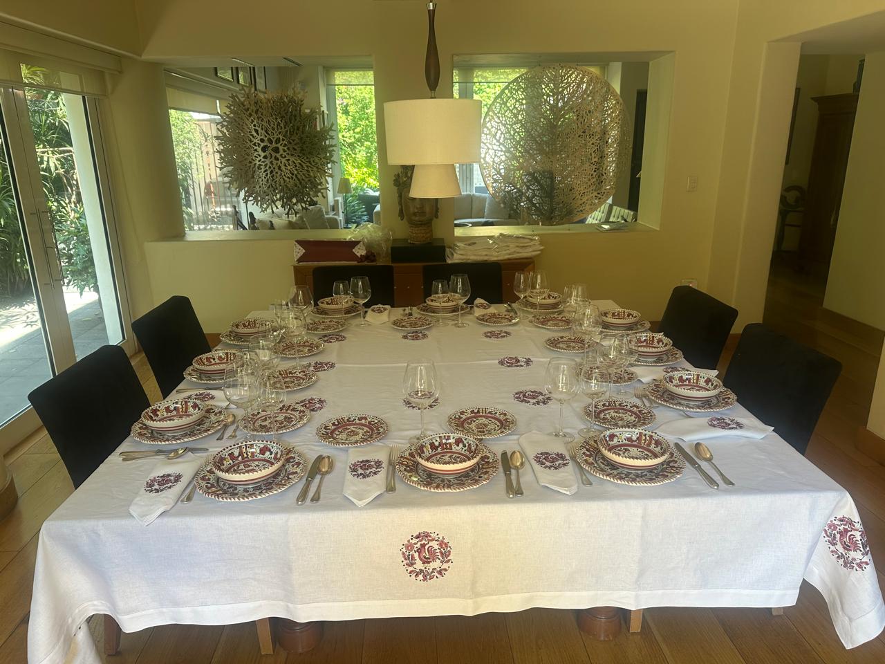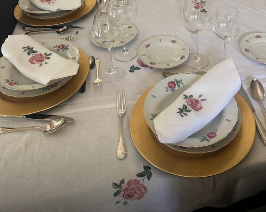 En Dayan Decor partimos de esa vajilla amada. Observamos sus flores, sus líneas, sus colores, su espíritu. Y a partir de ella diseñamos manteles y servilletas hechos a medida, pensados para dialogar con lo que ya existe y honrarlo.