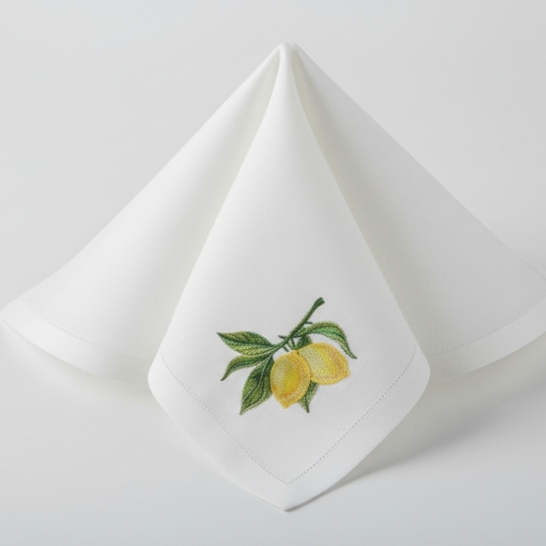 Confeccionados en lino importado y bordados con hilo DMC por un artesano cuya precisión roza lo impecable, cada limón es una pequeña celebración de color y vida. No hay dos iguales, porque cada puntada lleva el tiempo, el cariño y el ojo exigente de quien ama su oficio.