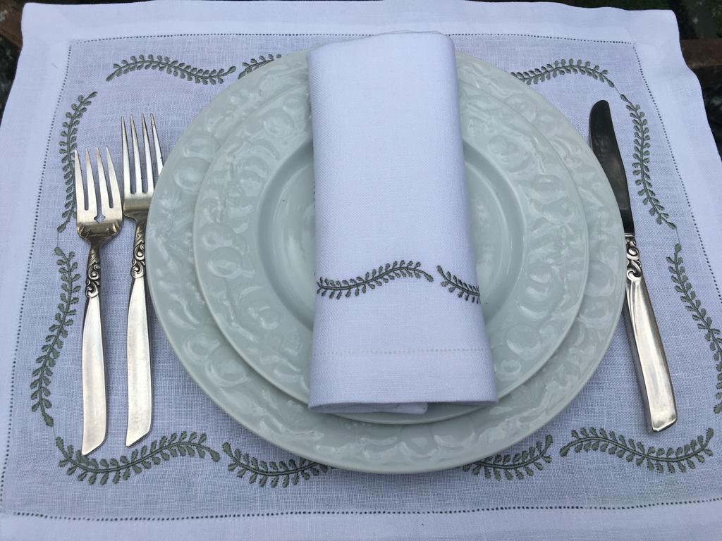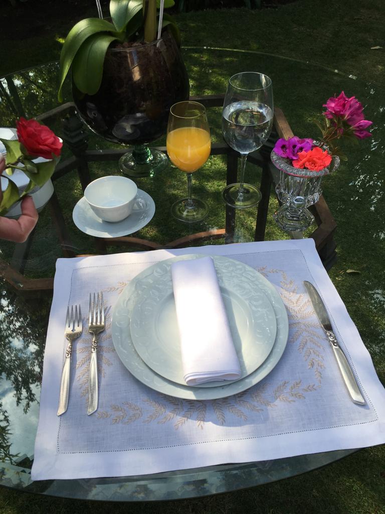 Si tienes una vajilla que amas, esa pieza heredada de la abuela, el juego especial de tu tía o una colección que atesoras, puedes contactar a Susana para crear un diseño de bordado que haga armonía perfecta con ella. Trabajamos de manera personalizada para que cada mantel, servilleta o individual dialogue con los colores, las formas y la historia de tu mesa. El resultado es un conjunto único, creado especialmente para ti, donde todo encaja con una belleza que se siente apenas lo ves.